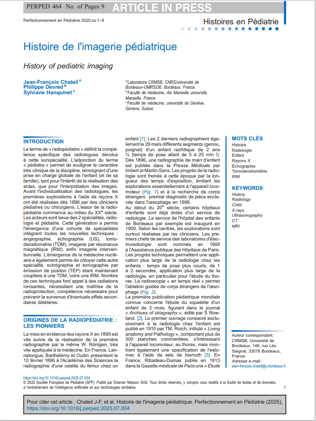 Histoire de l’imagerie pédiatrique Jean-François Chateil, Philippe Devred, Sylviane Hanquinet 2025-08-292026-01-06 Marion Lenoir